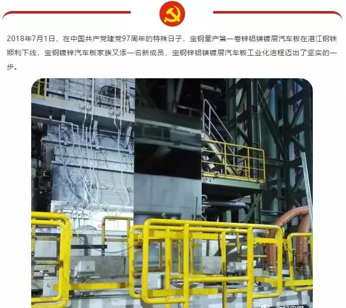 隨著中國制造的逐步升級,這一現狀已被打破,昨天寶鋼的公眾號“你好寶鋼”公布了一條重磅消息:鋅鋁鎂鍍層汽車板在湛江鋼鐵正式下線!