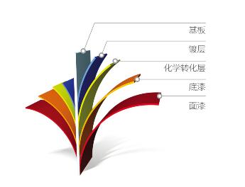 具有優異的抗沾污性能,能抵抗污染物滲透到漆膜內。優異的親水性能 保證了雨水充分展開于涂層表面,起到良好的沖刷效果。高裝飾性及優異的戶外耐久性! 特殊“親水+抗沾污”面漆結構設計,實現自我清潔! 多種面漆組合,滿足不同終端服役需求 中、高強度基本+不同鍍層組合,滿足多種設計要求! |